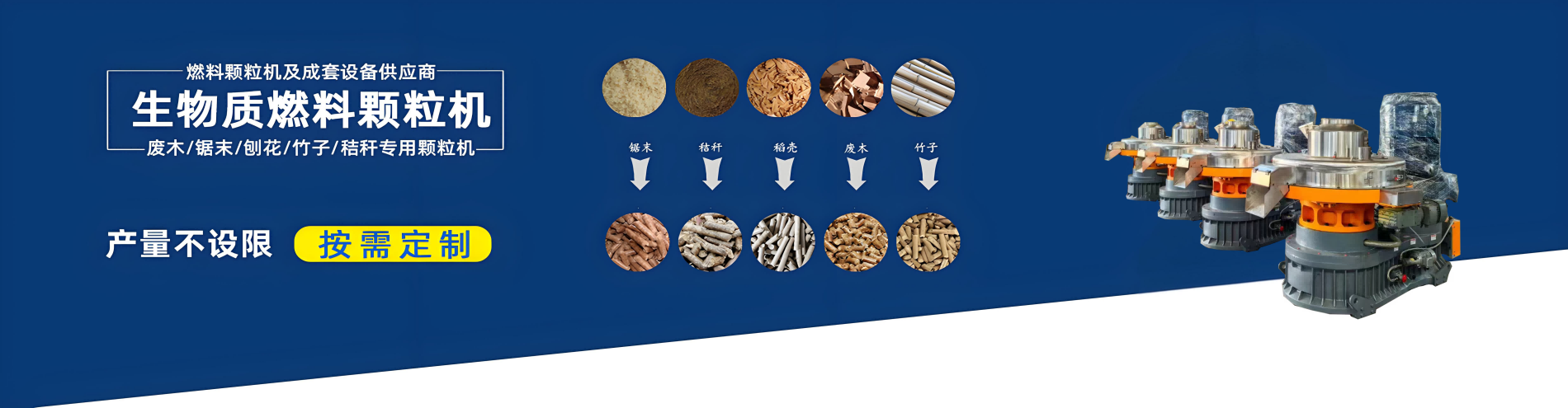 答:常規生物質顆粒設備生產線由4個部分組成:粉碎機+烘干機+制粒機+包裝機...